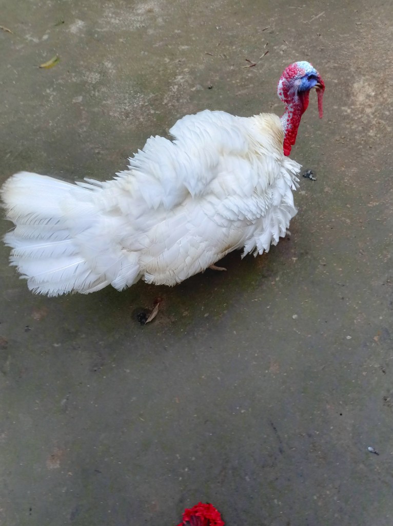 The aunts raised a lot of ducks and chickens, including chickens and turkeys, and I uploaded a picture of a huge turkey. You can see how giant turkey will be slaughtered for us. I like turkey very much, so Auntie will bless it for all of us and we will cook and eat it. It will be very fun.